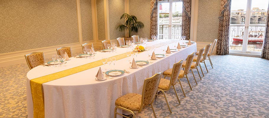 東京ディズニーシーのメディテレーニアンハーバーをのぞむ小宴会場をご利用いただくプランです。美しい景色とともに、優雅なひとときをご堪能ください。